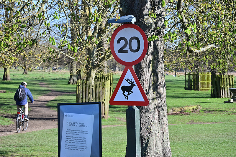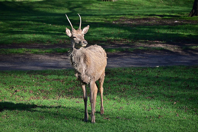 立國千年,但自然原野地甚多,即使是首都倫敦週邊,也是生態豐富。我聽說灌木公園有野鹿,便搭火車前往。倫敦搭區內火車至Teddington站下車,一出站就是悠美的社區,磚牆斜屋頂建築整齊劃一。進入公園就會看到注意野鹿的牌誌,不過高大的樹木更吸引人。英國夏季短暫,大部份季節潮濕陰冷,這些樹木樹幹極粗,估計也有數百年了。公園沒有圍牆,外圍連續性地連接原野地,不僅是休閒性的公園,更像個生態體系。